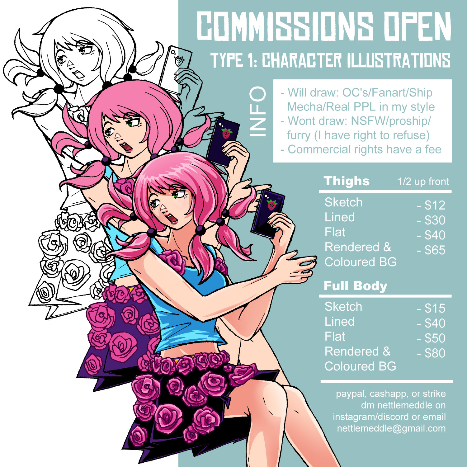 Approach me with whatever comes to mind, I’m flexible and love to experiment.